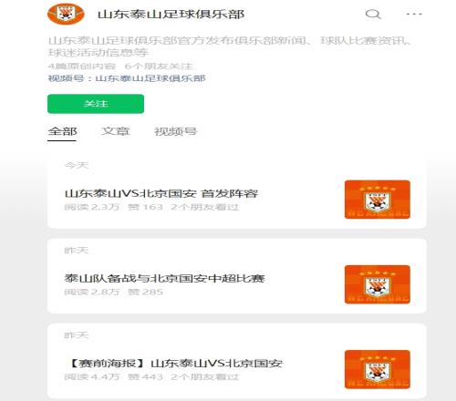 山東泰山官方微博上次更新內容是在3月6日,已經(jīng)超過一周沒有更新,不過山東泰山的微信公眾號一直在正常更新。